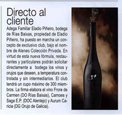 El lunes dia 25 de Junio se presentó en Madrid el nuevo proyecto de Eladio Piñeiro, su Adega Familiar. El acto ha tenido lugar en el idílico marco de los jardines del museo del traje, en el restaurante Bokado, situado en Moncloa. Al evento asistieron un buen número de periodistas y restaurantes que disfrutaron de una velada marcada por la degustación de los nuevos productos de Eladio en esta, su nueva andadura al frente de lo que pretende ser un proyecto revolucionario en el sector, tanto por su apuesta de calidad, partiendo de unas elaboraciones singulares, pasando por dotar a sus productos de un cuidado diseño y terminando en la forma de canalizar los productos a traves de Ateneo Colección Privada.. |